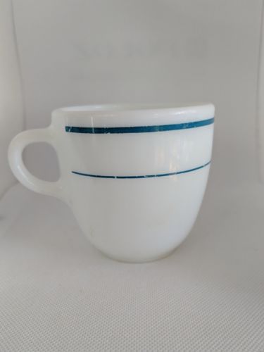 Vintage Pyrex milk glass Turquoise Blue Band Stripe Mug/Cup