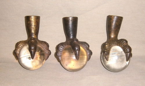 Lot Of 3 Antique Cast Iron Claw Foot With 3" Glass Balls