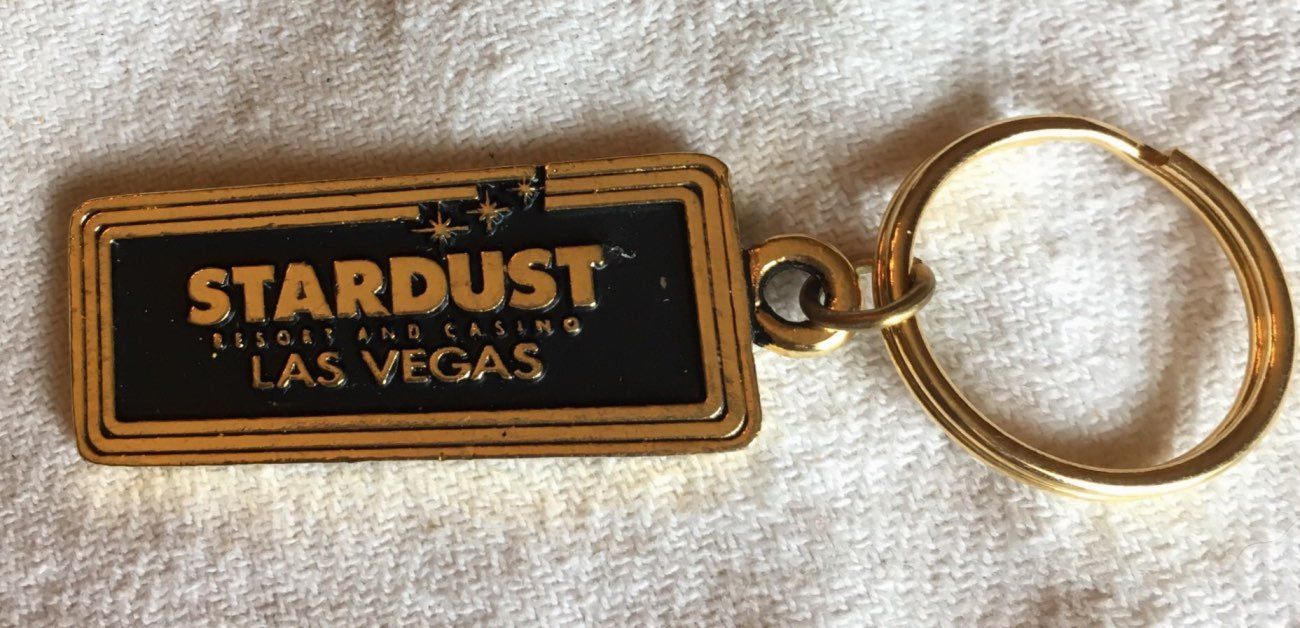Title (ebay affiliate link): Vintage ? Las Vegas Casino Keychain Key Chain Goldtone w/ Black Stardust