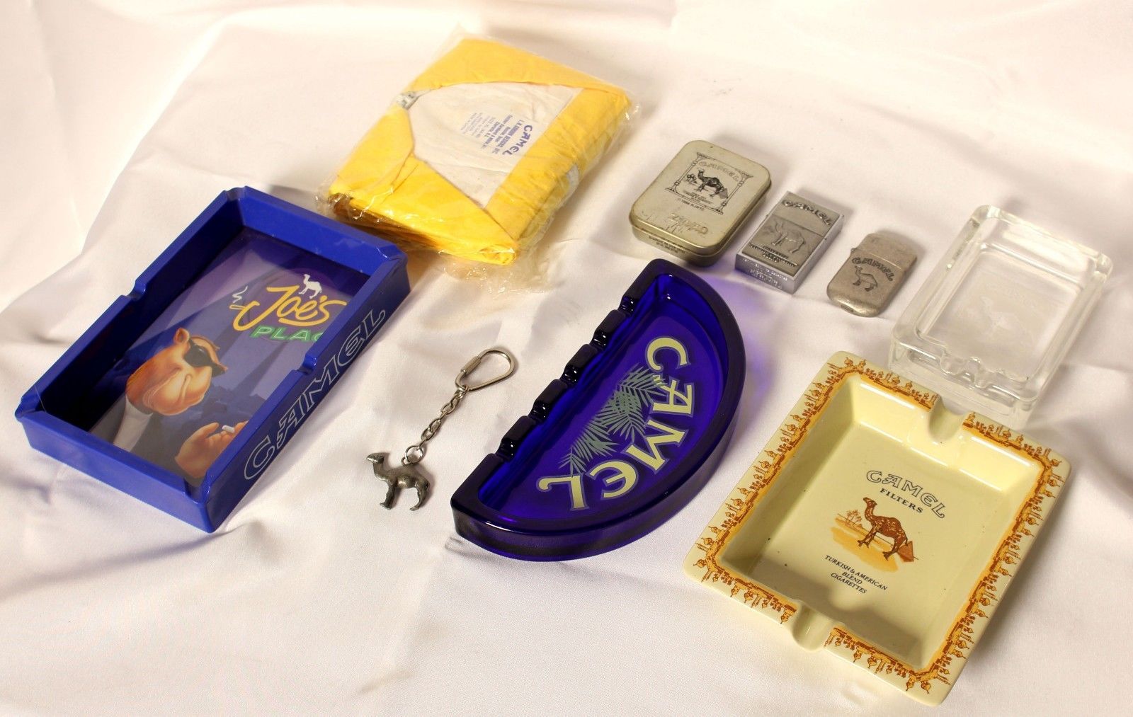 Title (ebay affiliate link): Vintage Camel memorabilia Cigarette Ashtrays,Lighters,Keychain,& Apparel