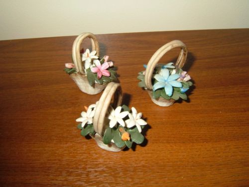 VINTAGE CAPODIMONTE MINI FLOWER BASKETS SET OF 3!