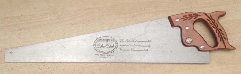 Title (ebay affiliate link): Atkins The FOUR HUNDRED Silver Steel Cross-Cut Hand Saw 2" - 12 ppi Blade