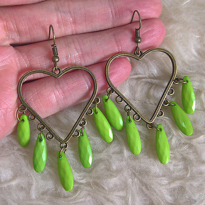 Title (ebay affiliate link): Vintage Womens Antique Metal Heart Green Teardrop Bead Dangle Drop Hook Earring