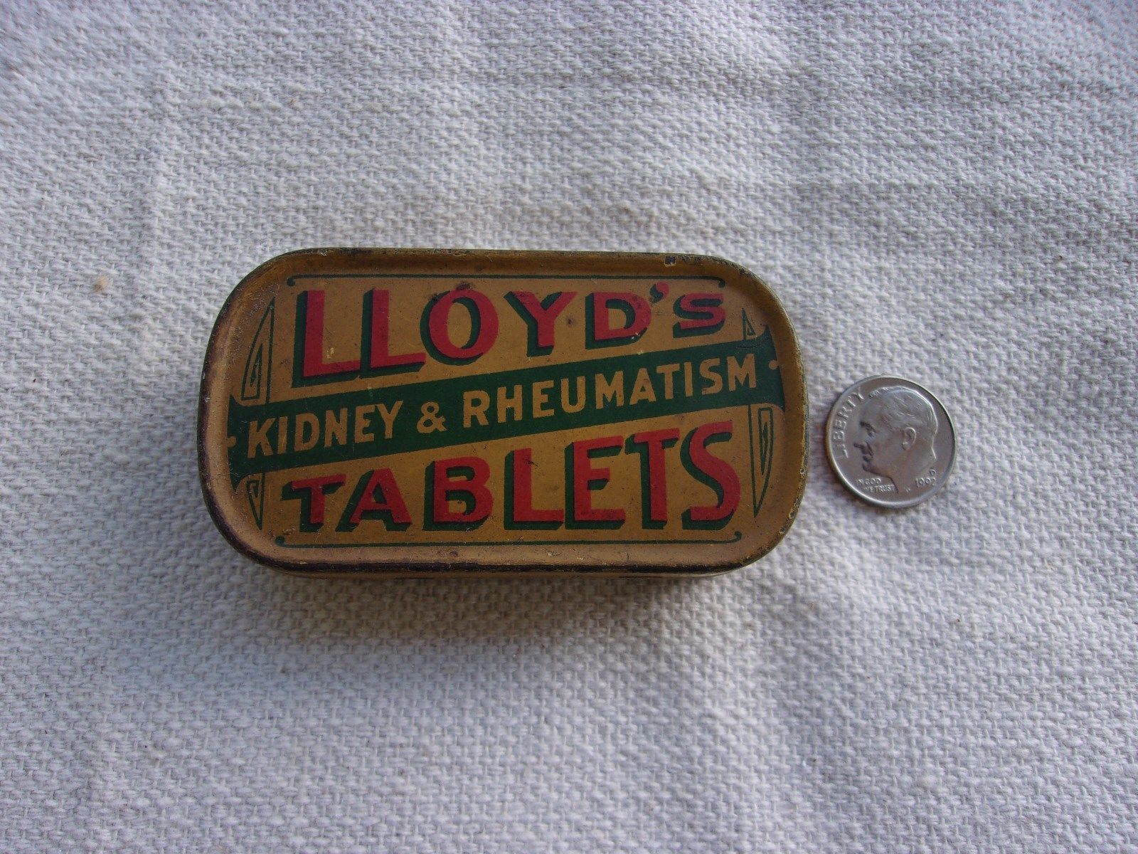 Title (ebay affiliate link): Lloyd''s Kidney and Rheumatism Tablets Advertising Tin--1920s