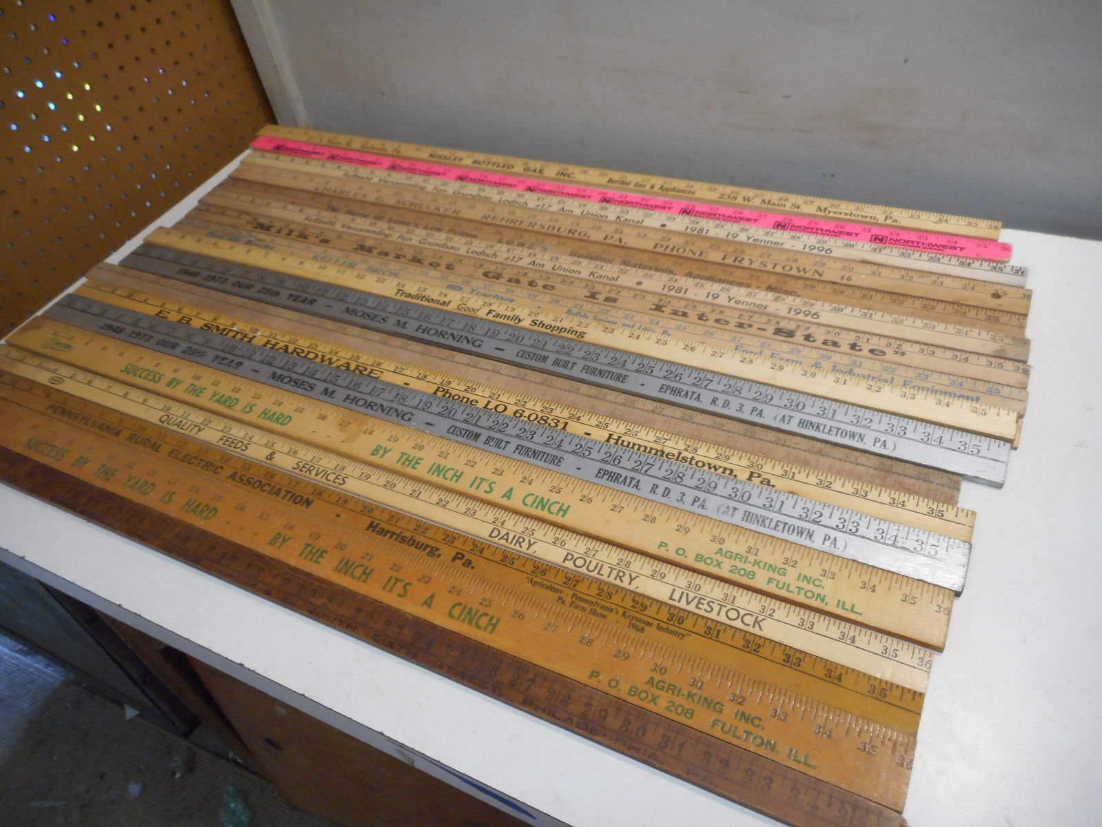 L1247- 18 Vintage Advertising Yardsticks - FORD, Etc - Repurpose Art Yard Sticks