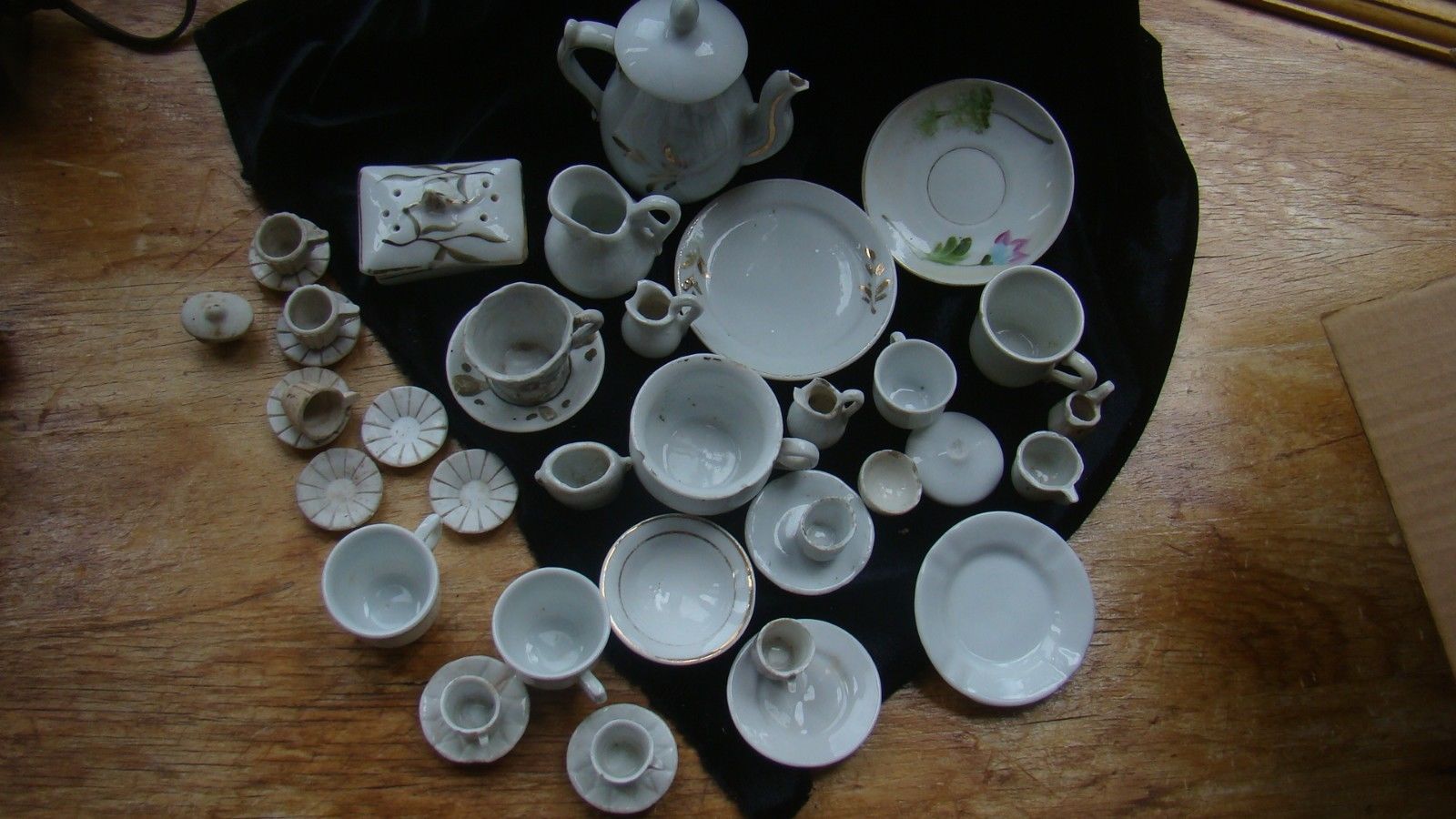 ANTIQUE DOLL DOLLHOUSE DISHES 40+ PIECES Porcelain