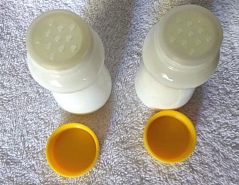 Title (ebay affiliate link): Milk Glass Salt & Pepper Shakers with Plastic Lids Made in Japan Unused #46