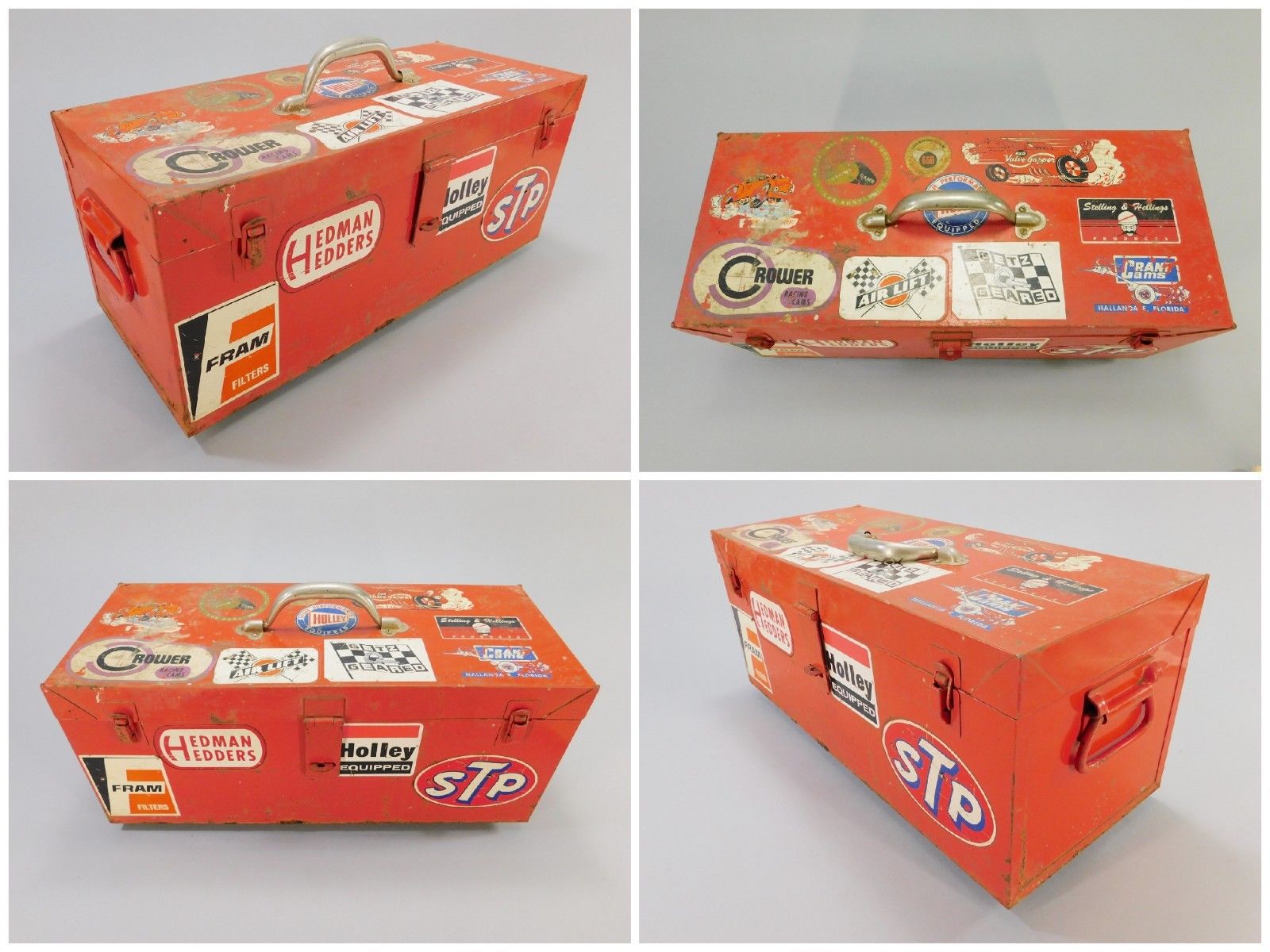 Title (ebay affiliate link): Vintage Snap-On Tools Red Steel Toolbox w Drag Racing Stickers STP Holley Crower