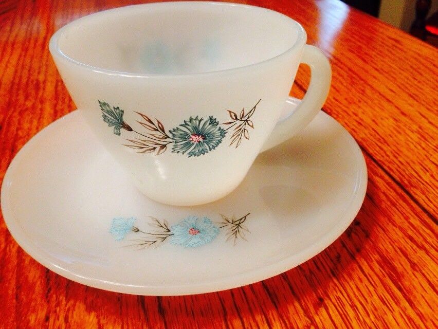Title (ebay affiliate link): Vintage Anchor Hocking Fire King Milk Glass Cup & Saucer 1960''s Never Used