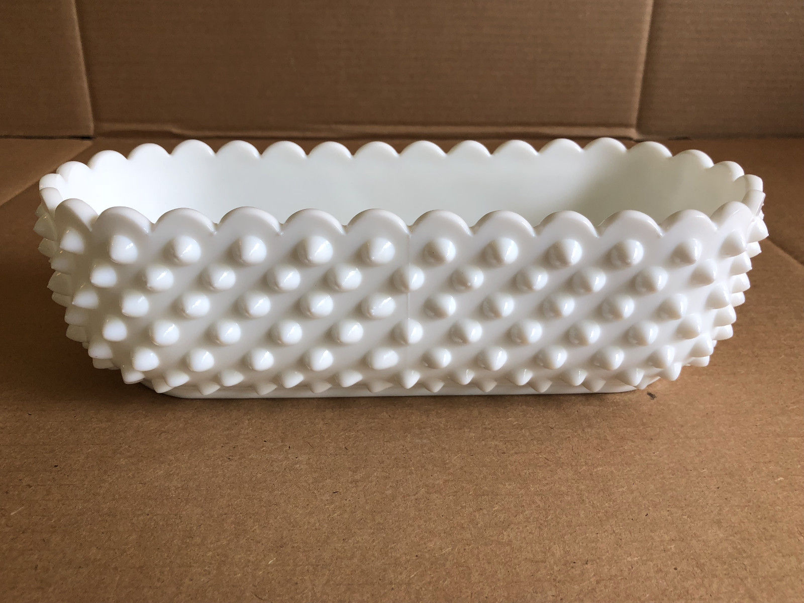Fenton Hobnail White Milk Glass Oval Oblong Planter Vase