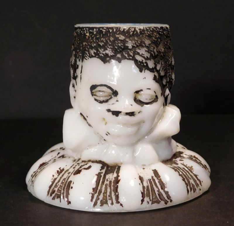 Title (ebay affiliate link): ANTIQUE BLACK AMERICANA MILK GLASS MATCH HOLDER WITH STRIKERS