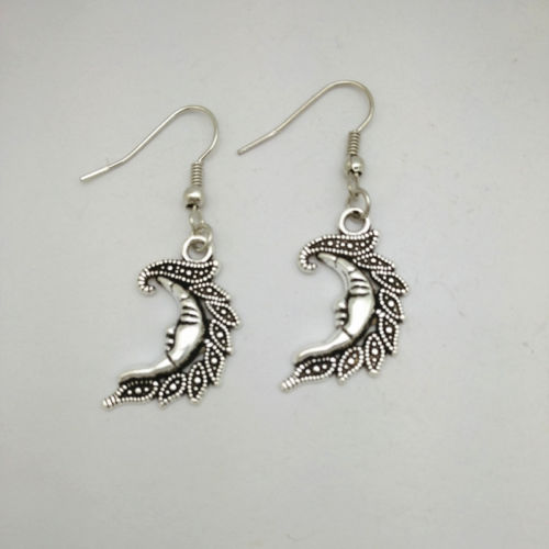 Title (ebay affiliate link): Halloween present Antique Silver Jewelry moon face earring