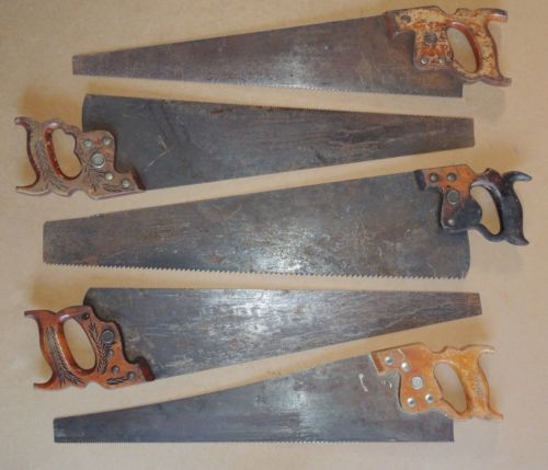 Title (ebay affiliate link): Vintage lot of 5 DISSTON Hand Saws Wood Handles, good for restoration or parts