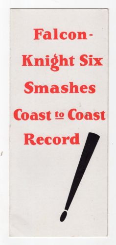 Title (ebay affiliate link): 1920s Falcon-Knight Six Smashes Coast to Coast Record brochure