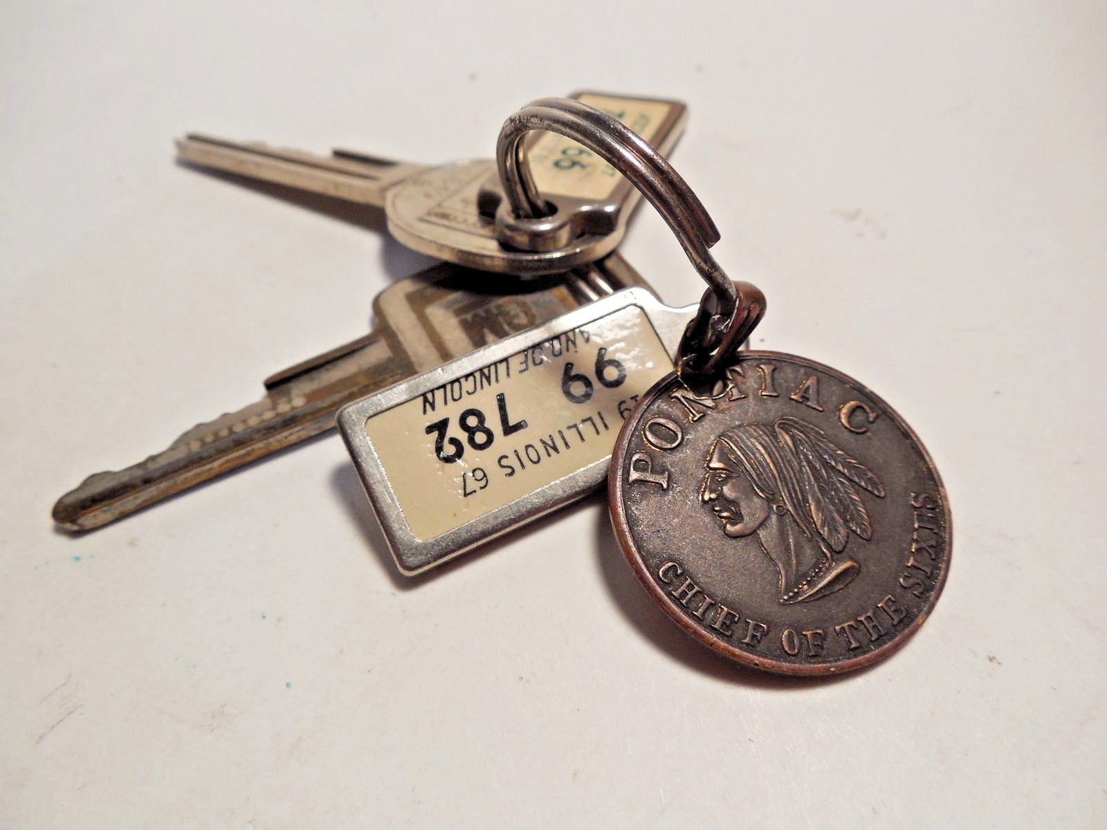 Title (ebay affiliate link): Vintage Pontiac Car Keys with Pontiac Coin Logo & Mini Illinois 1965/67 License