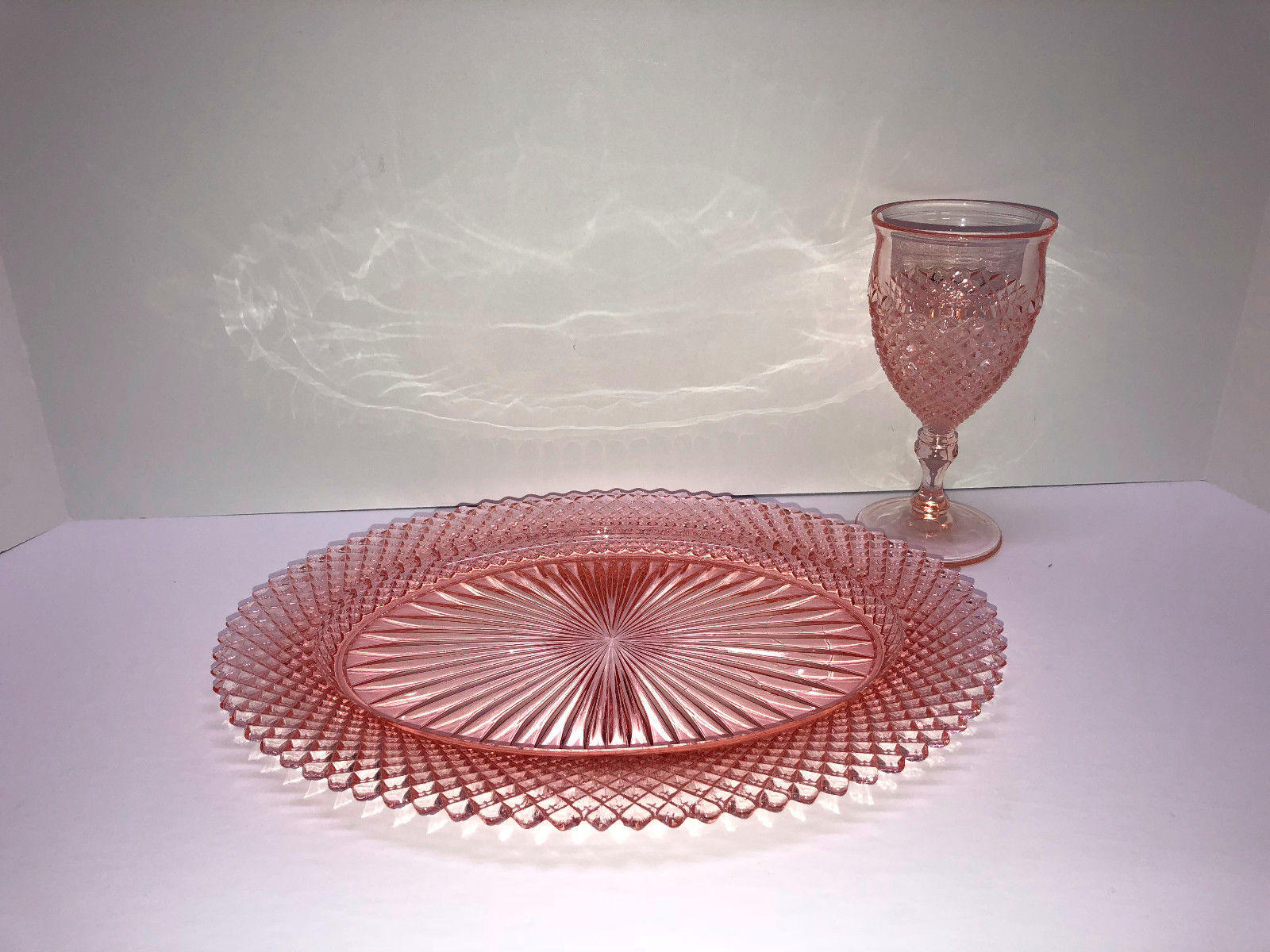 Title (ebay affiliate link): 2 Pieces MISS AMERICA Pink Depression Glass~Oval Platter and Goblet