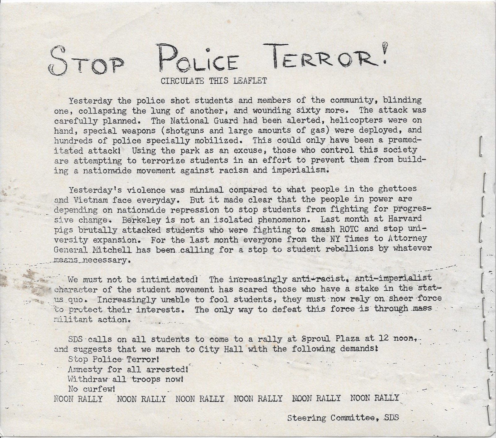 1960s SDS Leaflet Berkeley rally/march on City Hall Students Demoratic Society