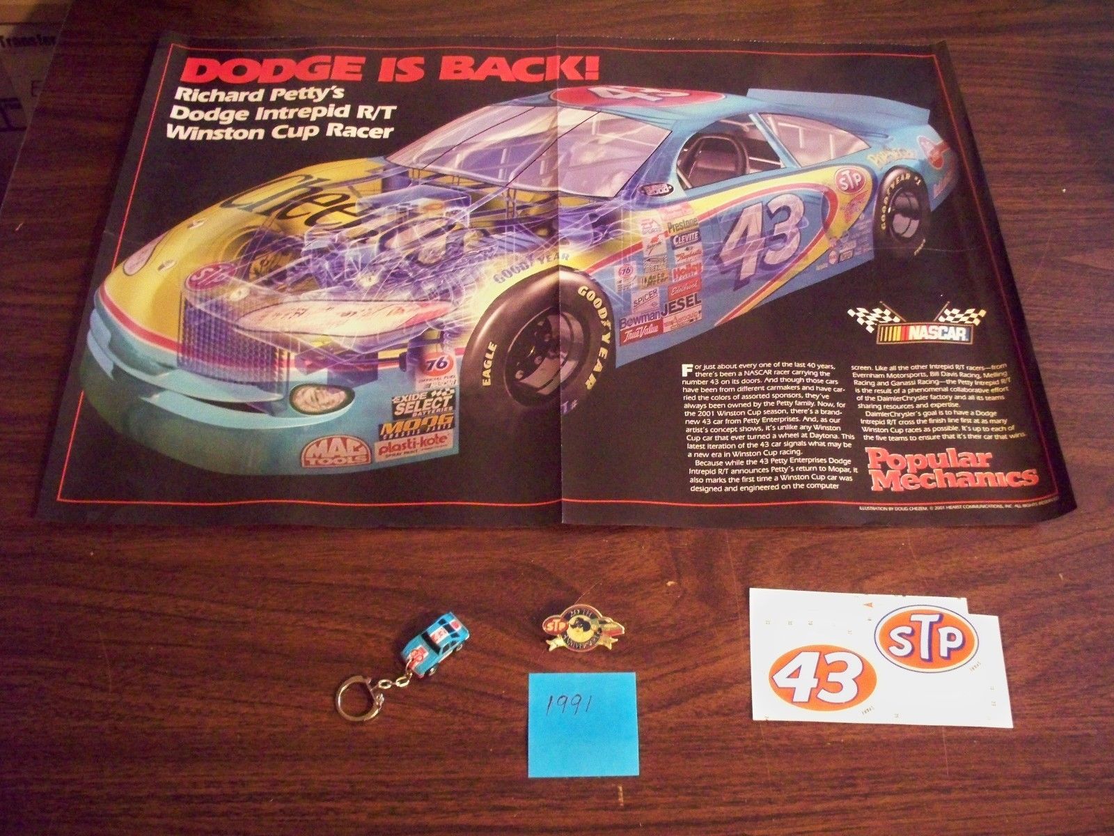 Richard Petty Nascar Car #43 Collectible Vintage Memorabilia-Pin-Key Chain-Etc.
