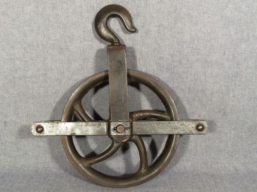 Title (ebay affiliate link): Antique Large Cast Iron and Steel Barn or Well Pulley 10" dia Marked Anvil Used