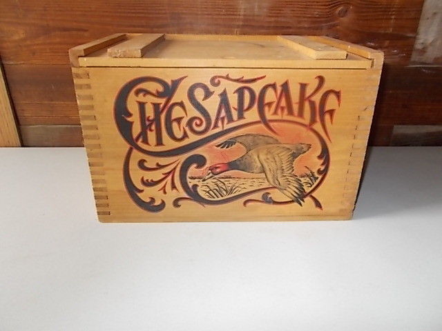 VINTAGE CHESAPEAKE WOOD BOX, REDHEAD DUCK.