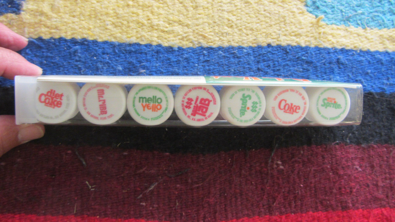 Vintage Set of Promo Plastic Bottle Caps Coke Mello Yello Tab Sprite Poly Vent