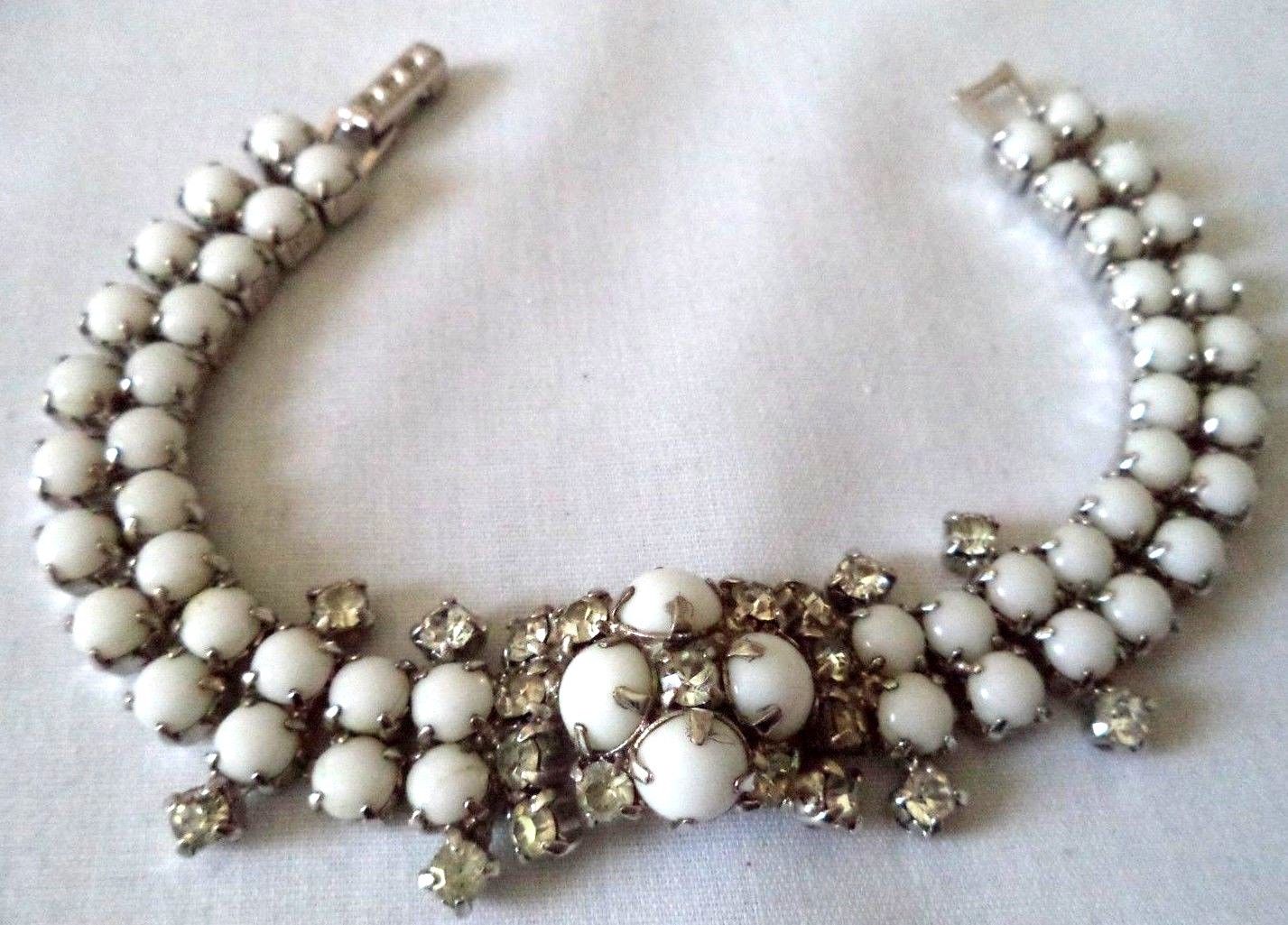Title (ebay affiliate link): STUNNING VINTAGE ESTATE HIGH END MILK GLASS RHINESTONE 7 1/4" BRACELET!!! G6819H