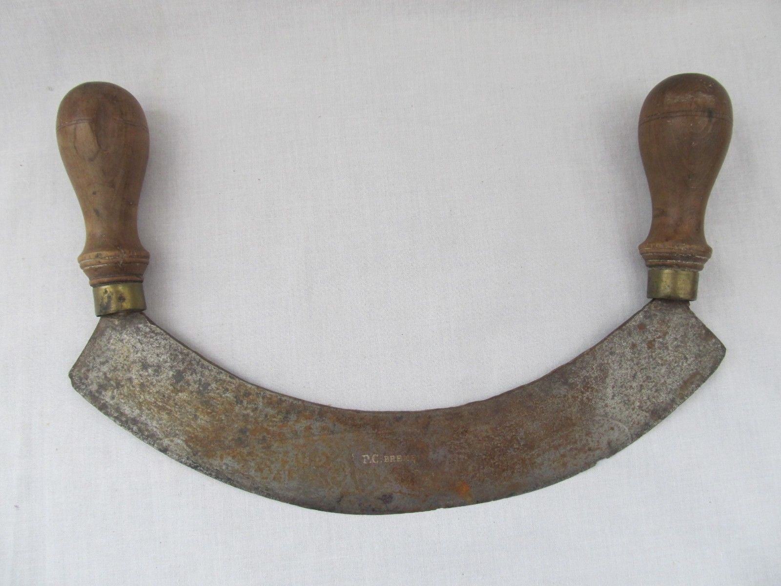 Title (ebay affiliate link): Primitive Crescent Blade Double Wood Handle Kitchen Food Meat Chopper