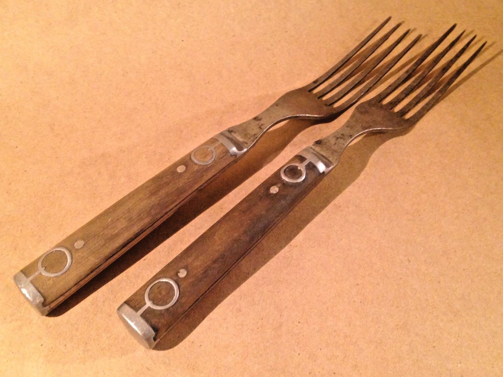 Title (ebay affiliate link): 2 1800s Antique Primitive Handmade American Mission Wood Pewter Forks Tableware