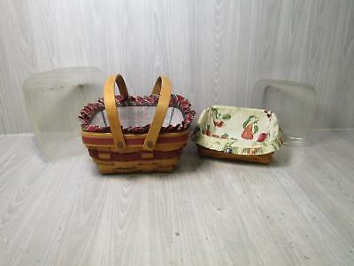 Lot Of 2 Square Longaberger Basket w/ Cloth Liners And Plastic Protectors