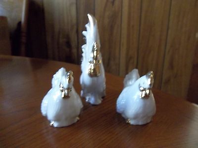 Rooster and two hens, white trimmed in gold - Enesco Imports Japan
