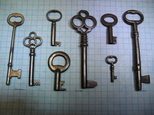 Title (ebay affiliate link): LOT OF 8 ANTIQUE SKELETON, FURNITURE, BARREL, CABINET AND OLD LOCK KEYS