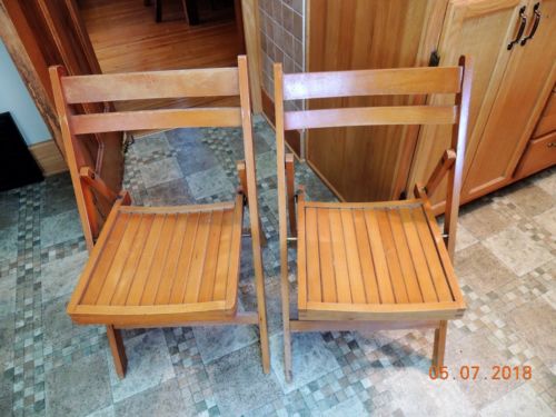 Title (ebay affiliate link): 2-Vintage-Antique-primitive-Wood-Slat-Folding-Chairs-BUILT-SOLID