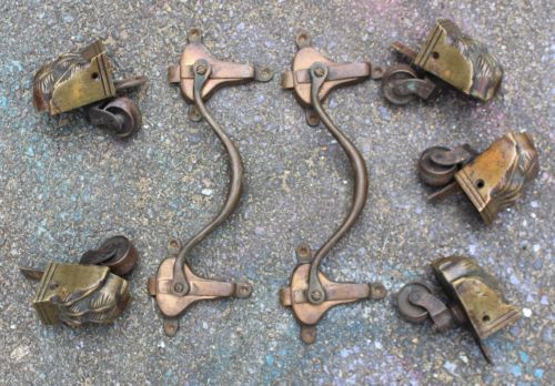 Antique Drop Leaf Table Hinges & Five Brass Paw Feet with Castors Duncan Phyfe