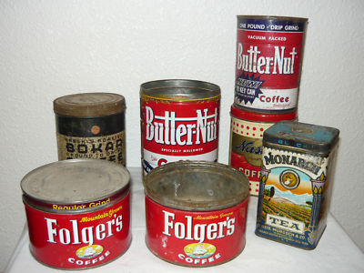 Vtg Coffee Tea Metal Tin Lot Monarch Butter-Nut Bokar +