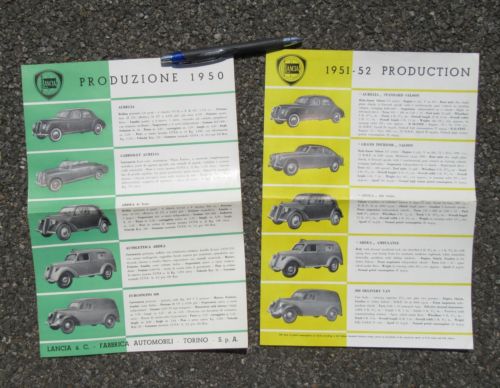 Title (ebay affiliate link): LANCIA SPEC SHEETS 1950 PRODUZIONE (in Italian) and 1951-52 PRODUCTION (English)