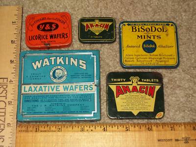 Vintage- Aspirin- Medicine- Laxative- Tin- Lot-of 5