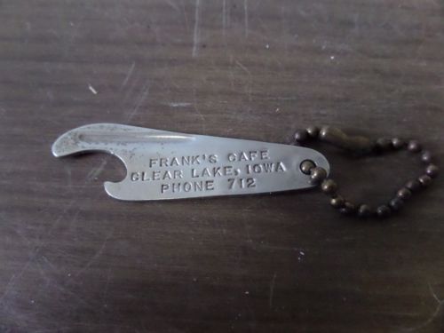Antique CLEAR LAKE IOWA IA Souvenir Bottle Opener Key Chain Franks Cafe