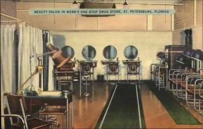 Title (ebay affiliate link): St. Petersburg FL Webb City Drug Store Beauty Salon Art Deco Interior Linen PC
