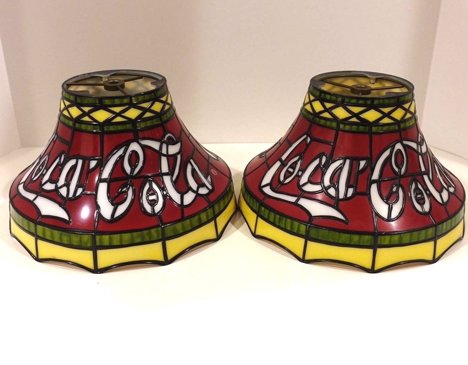 Title (ebay affiliate link): Tiffany Style Coca-Cola Stained Glass Plastic Shade Table Lamp Vintage Pair