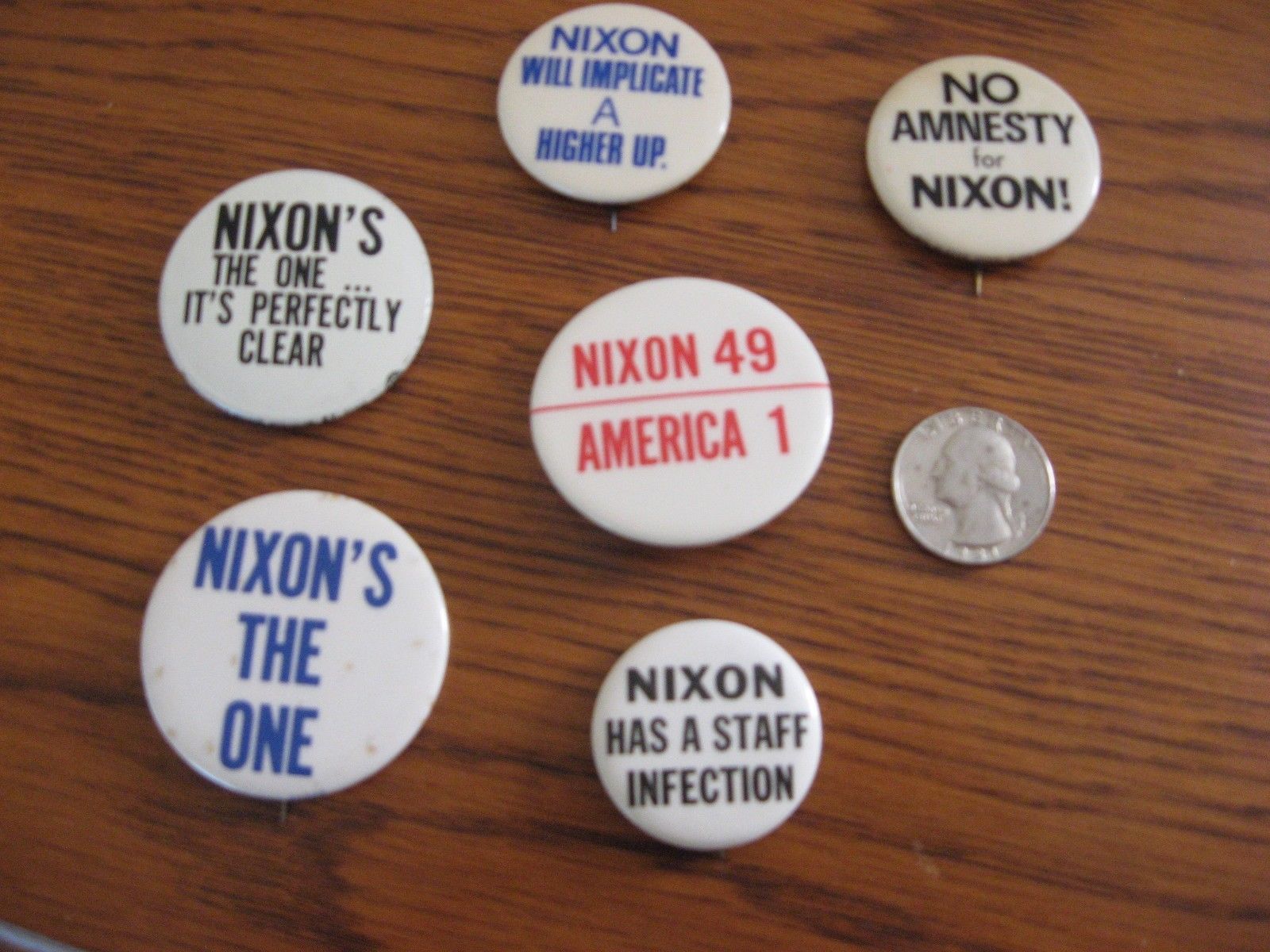 Title (ebay affiliate link): Six Watergate era pinback political buttons for Richard Nixon