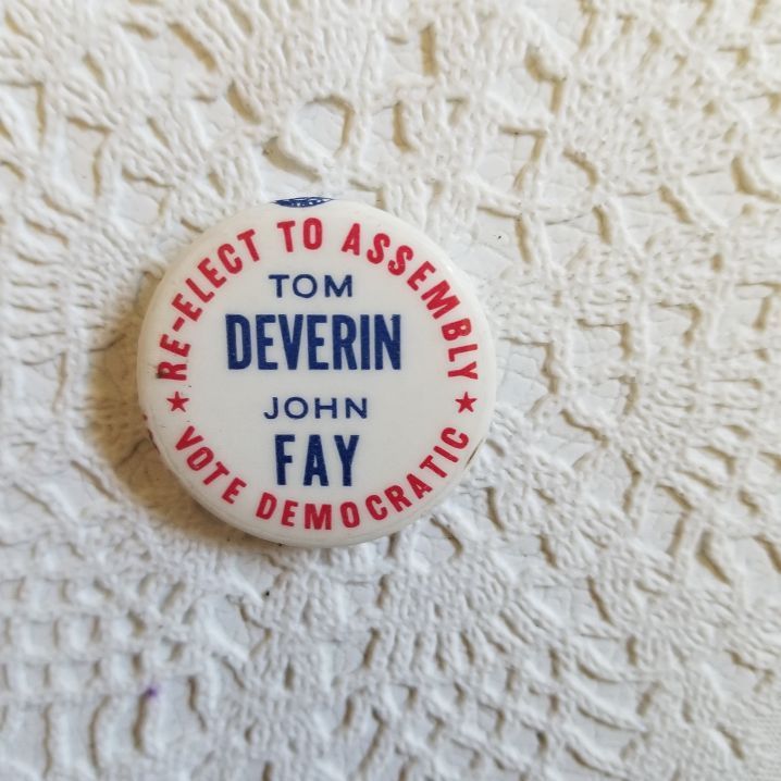 Vintage Political Campaign Button Tom Deverin John Fay Democrat New Jersey