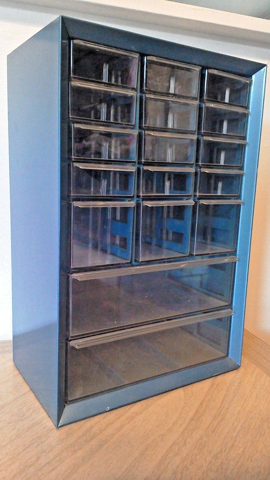 Title (ebay affiliate link): Vintage Blue Metal Akro Mills 17 Drawer Storage Cabinet Hardware Organizer Bin