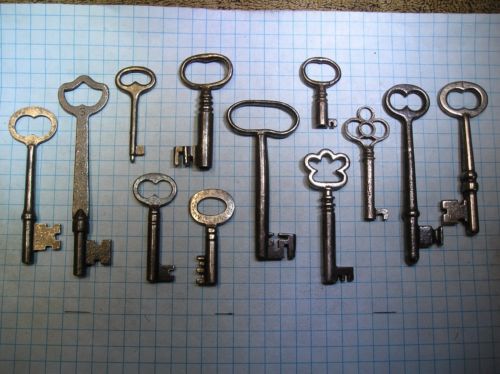 Title (ebay affiliate link): LOT OF 12 ANTIQUE SKELETON, FURNITURE, BARREL, CABINET AND OLD LOCK KEYS