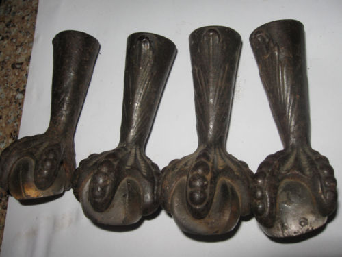 Title (ebay affiliate link): Antique CAST IRON set 4 - Claw and GLASS Ball table feet - nice set