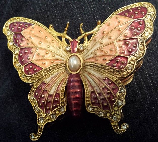 Title (ebay affiliate link): Vintage Gold Tone Jeweled Butterfly Trinket Box Magnet Lid is Brooch Pin