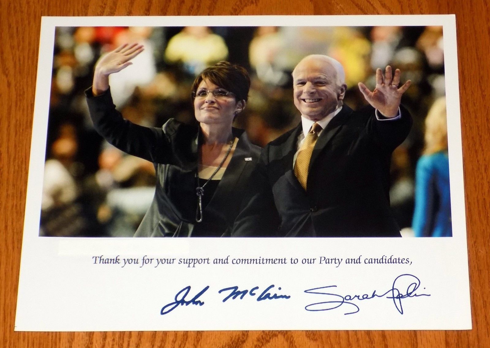 Title (ebay affiliate link): JOHN MCCAIN & SARAH PALIN 2008 PRESIDENTIAL CAMPAIGN 8X10 PREPRINT SIGNED PHOTO