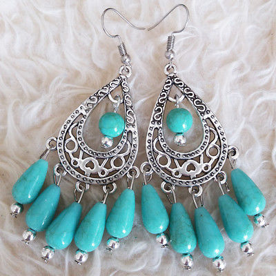 Title (ebay affiliate link): Womens Turquoise Teardrop Beads Antique-Silver-Tone Dangle Drop Hook Earrings