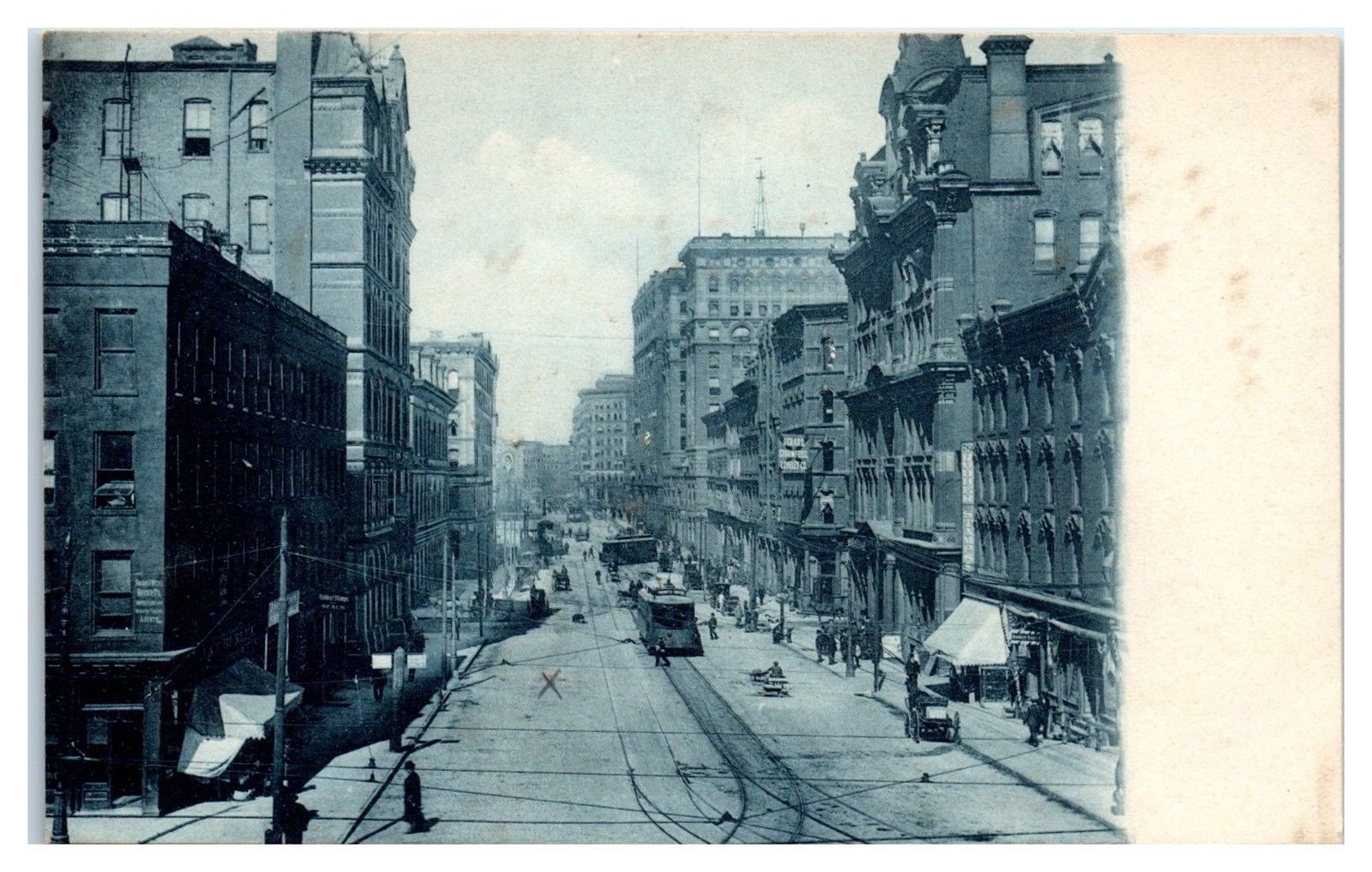 1908 Griswold Street w/ Trolleys, Detroit, MI Postcard