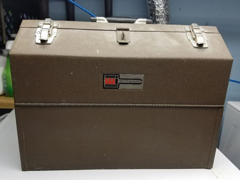 Title (ebay affiliate link): Vintage WATERLOO TOOL BOX Metal Nice 18" L X 13" H X 10" D Brown Crackel Finish