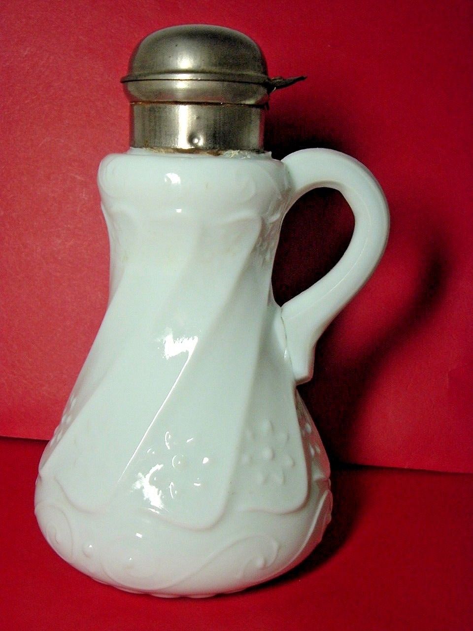 Title (ebay affiliate link): EAPG Antique Victorian Milk Glass Syrup Pitcher PETUNIA SWIRL